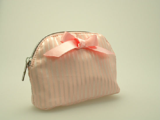 Ribbon with stripe printed satin cosmetic bag.