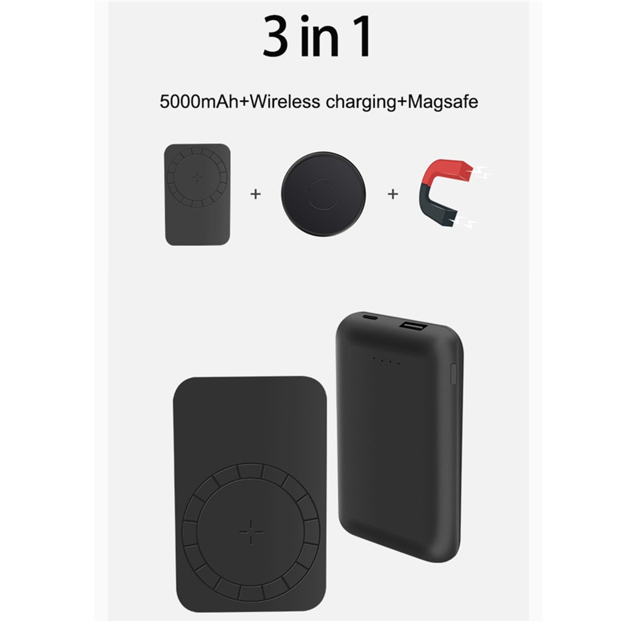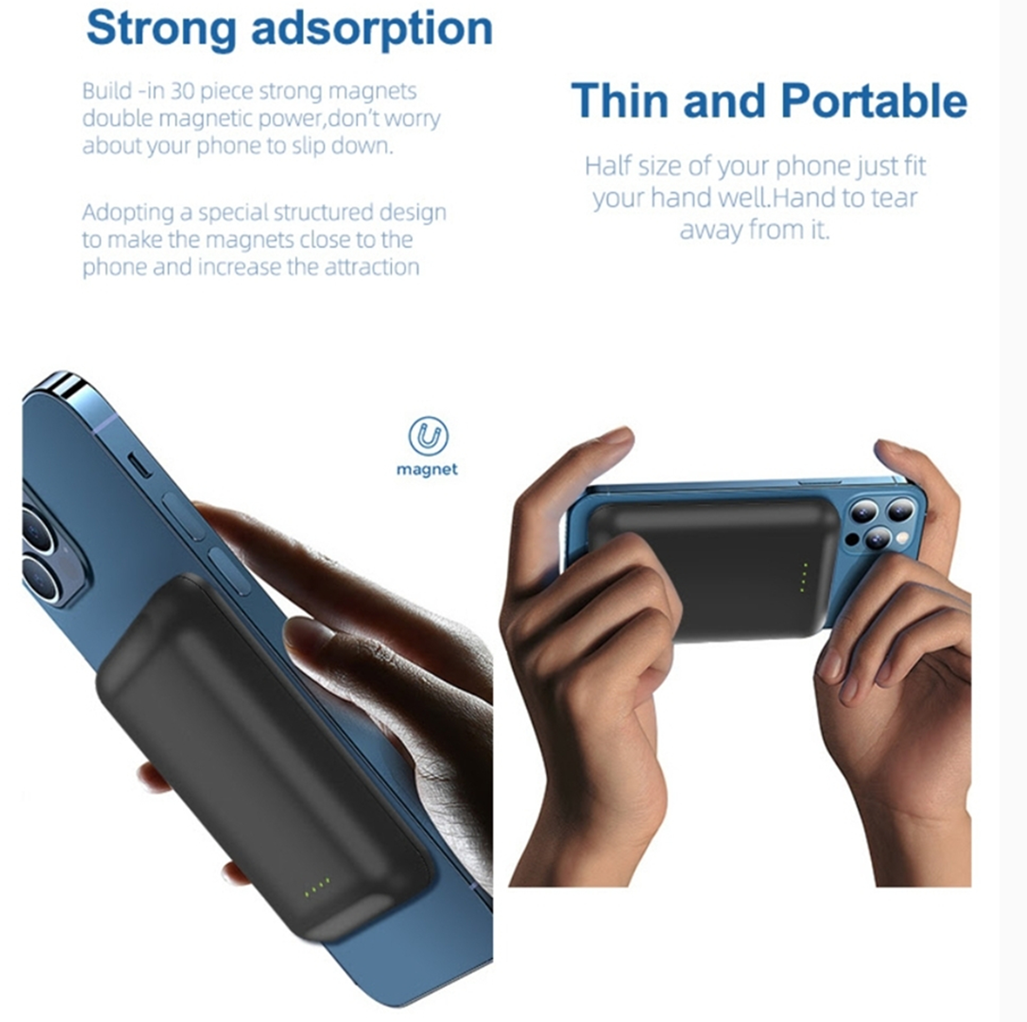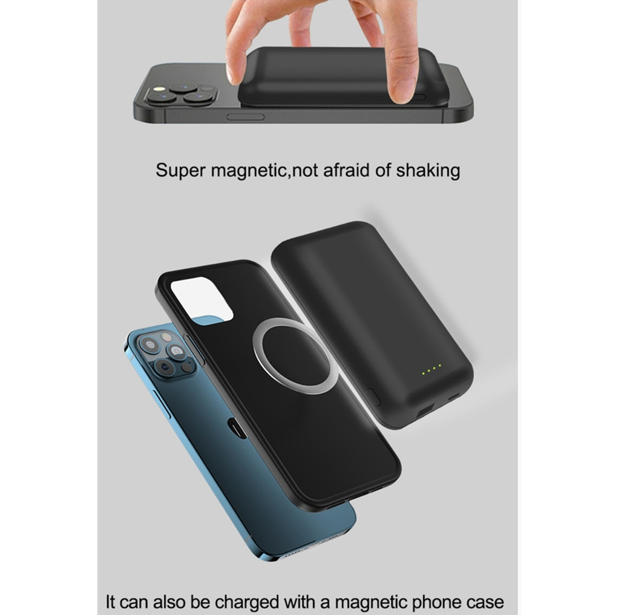 Strong Magnetic Force 5000mAh Wireless Power Bank Fast Charging Input/Output Port, Travel-Friendly