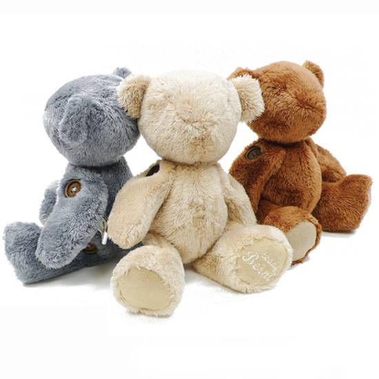 These are stuffed toy designed as bears. The stuffed toys are made of fluffy materials with the logo printed on the paws of the bears.