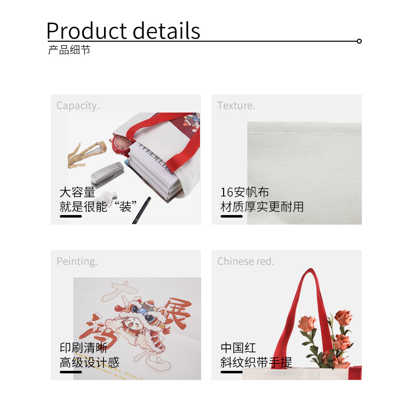 • WASHING NOTICE: cleaning of 100% cotton bags is not recommended. The washing shrinkage rate exceeds 10%. Should it be seriously dirty, it is recommended to wash it in cold water by hand. Hang dry is necessary before high- temperature ironing. Please notice that the fabric may not return to the original flatness. Flash drying and machine wash shall be prohibited.