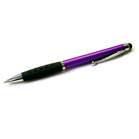 The touch pen features a smart and practical design with a purple barrel and a metal ring. The rubber handle allows for an easy and comfortable grip. It is easy to be clipped onto your pocket, book or backpack.