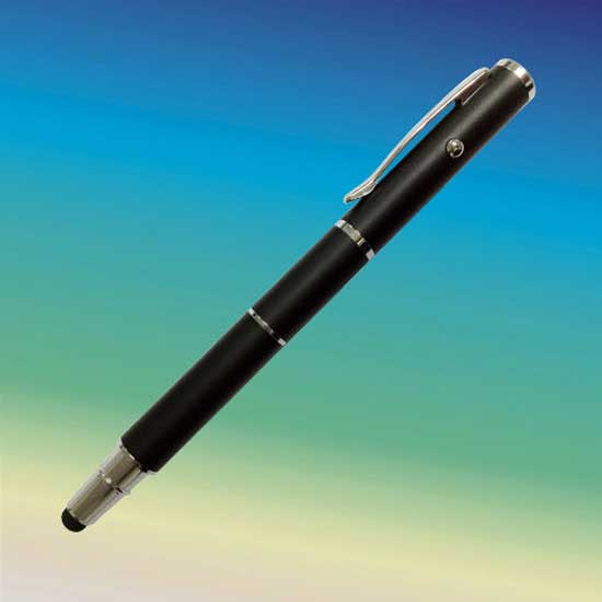 This multi-functional stylus touch pen for capacitive screens comes with a built-in red laser pointer for screen presentations. It can also serve as a fine-tip ballpoint pen for writing on paper. This reliable 3-in-1 stylus touch pen with a black barrel is ideal for iPad and iPhone.