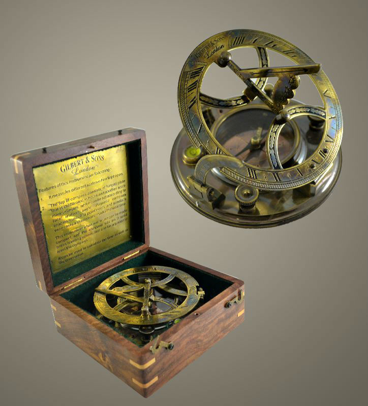 Round brass sundial compass 5 inches diameter made of solid brass, comes in wooden sheesham box