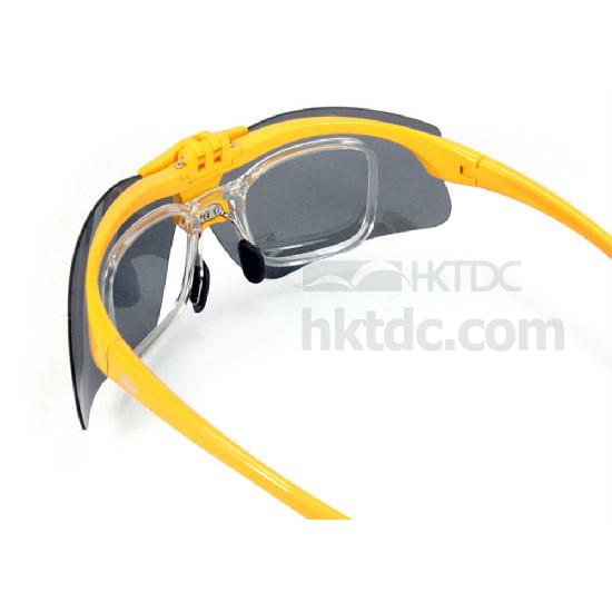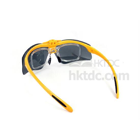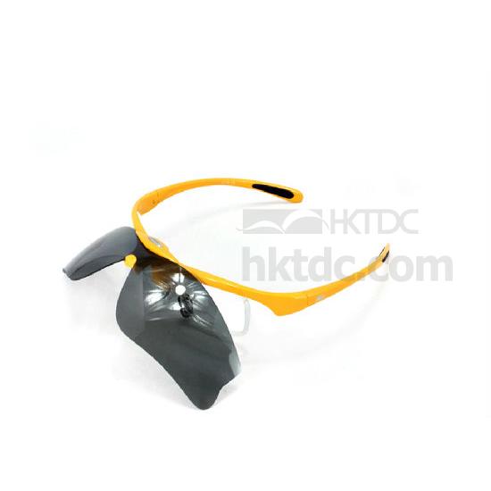 Featured is a pair of sports sunglasses designed with polarized lenses. They offer reliable protection against UV radiation. The materials chosen demonstrate superior scratch resistance for exceptional durability.