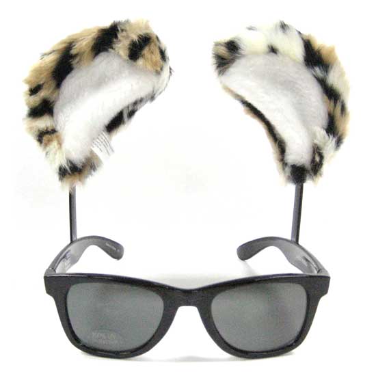 Pictured is a pair of sunglasses with tiger-ear embellishments. The fashionable design adds a touch of uniqueness. This pair of sunglasses is sure a chic addition to your casual outfit or role-play costume collection.