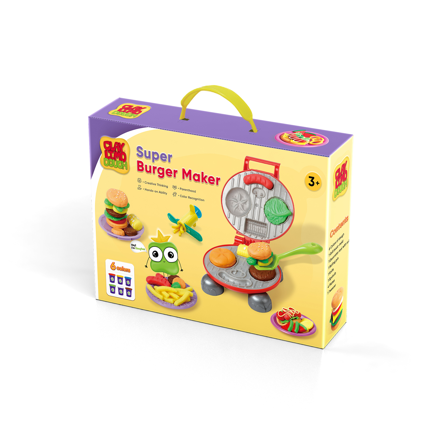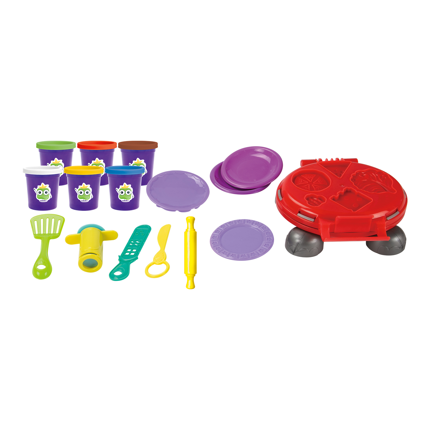 6 colours of 3oz dough,1 Grill book mould,1 decorator tool with rall, 1 rolling pin,1 knife,1 spatula,4 plates