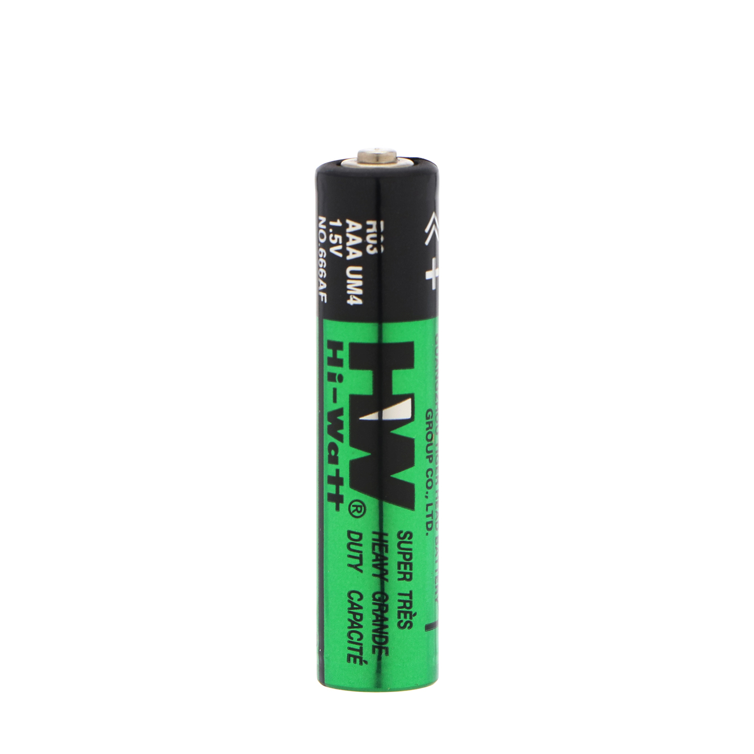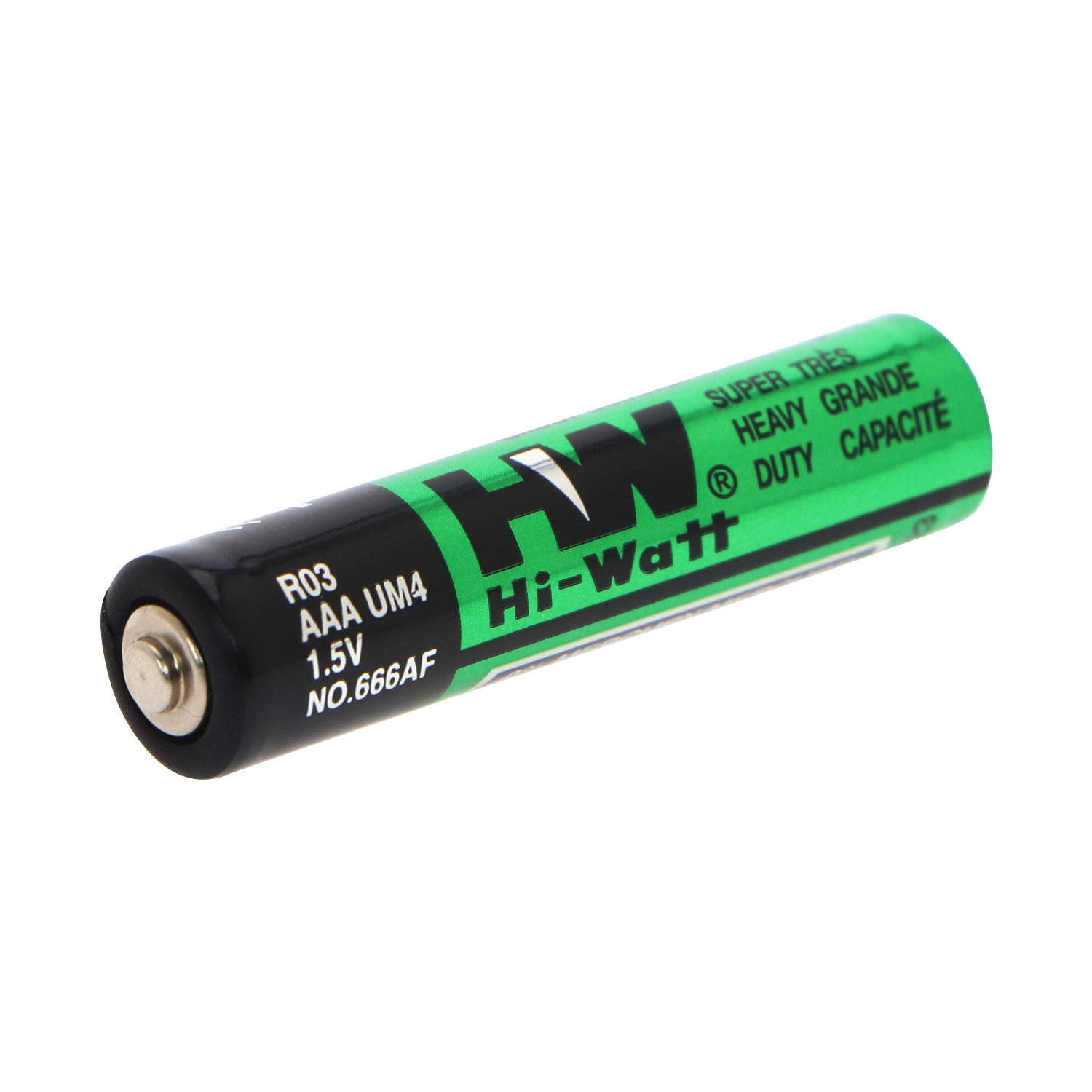Provide a reliable power source for remote controls, toys and more with the featured super heavy duty R03 battery. It comes in AAA size and has a nominal voltage of 1.5V. This AAA battery has a long shelf life and is safe and convenient to use.