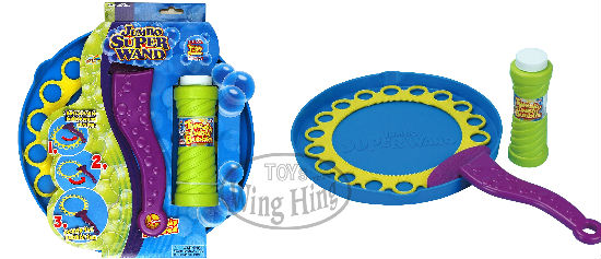 Jumbo Super Wand with Retractable Bubble Wand, a bottle of bubble solution and a Jumbo tipping plate is included.