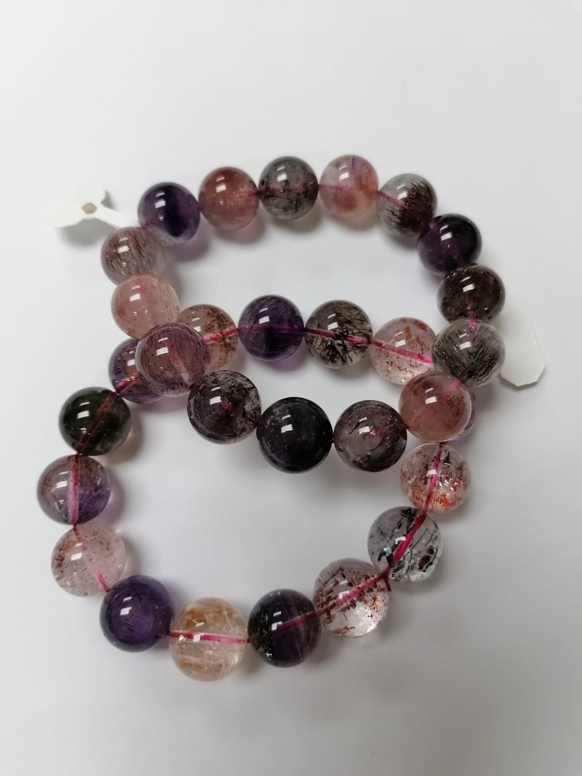 Super Seven Crystal are a potent combination of seven minerals including: Amethyst, Cacoxenite, Lepidocrocite, Rutile, Gaethite, Clear Quartz and Smoky Quartz