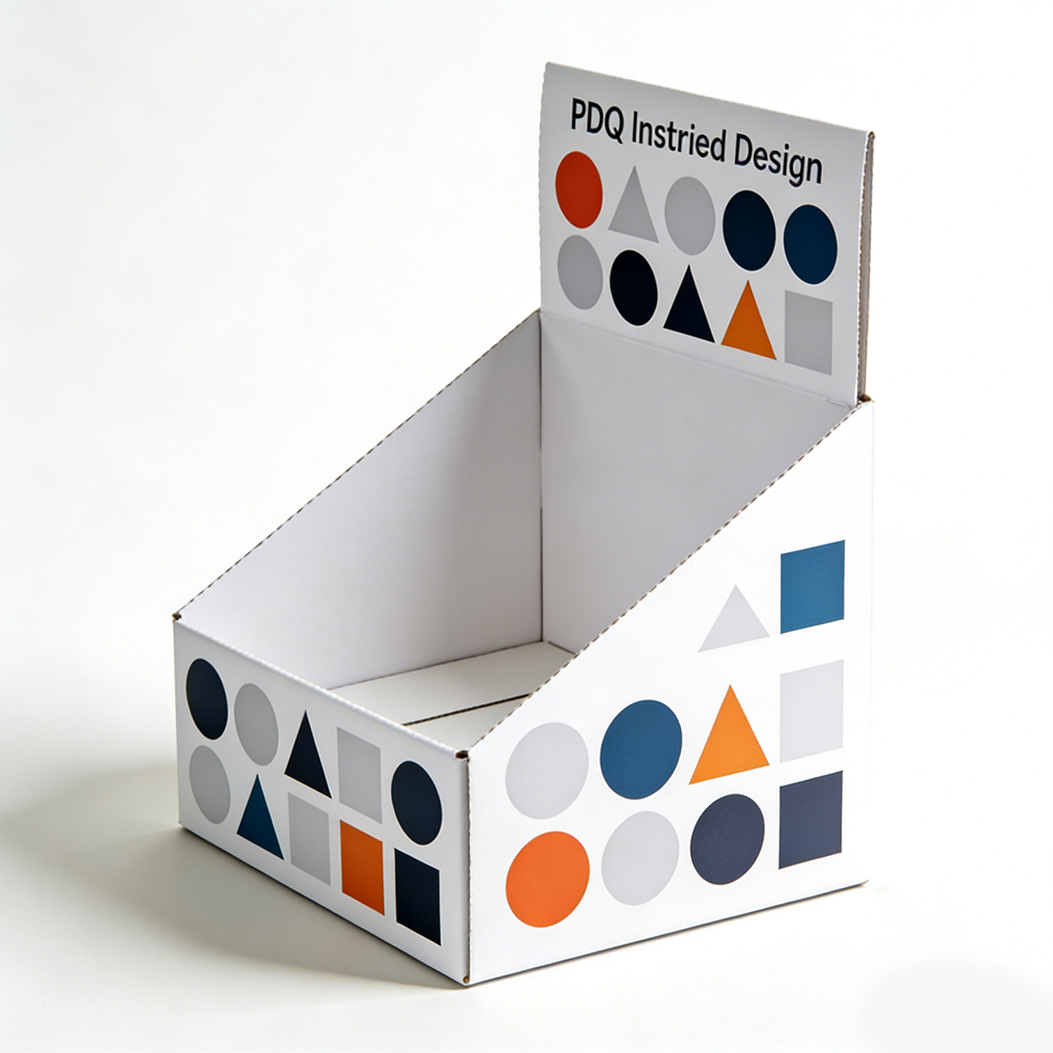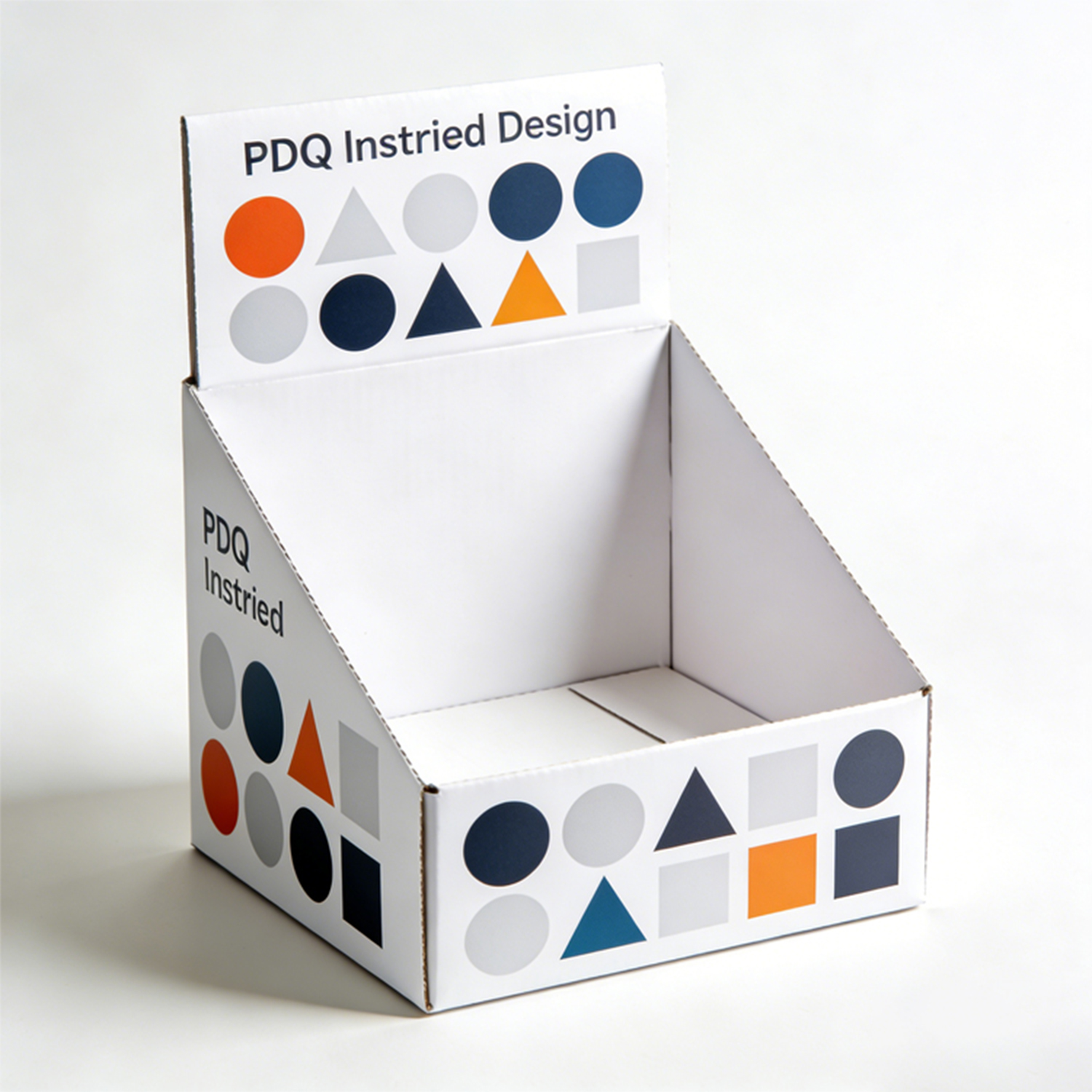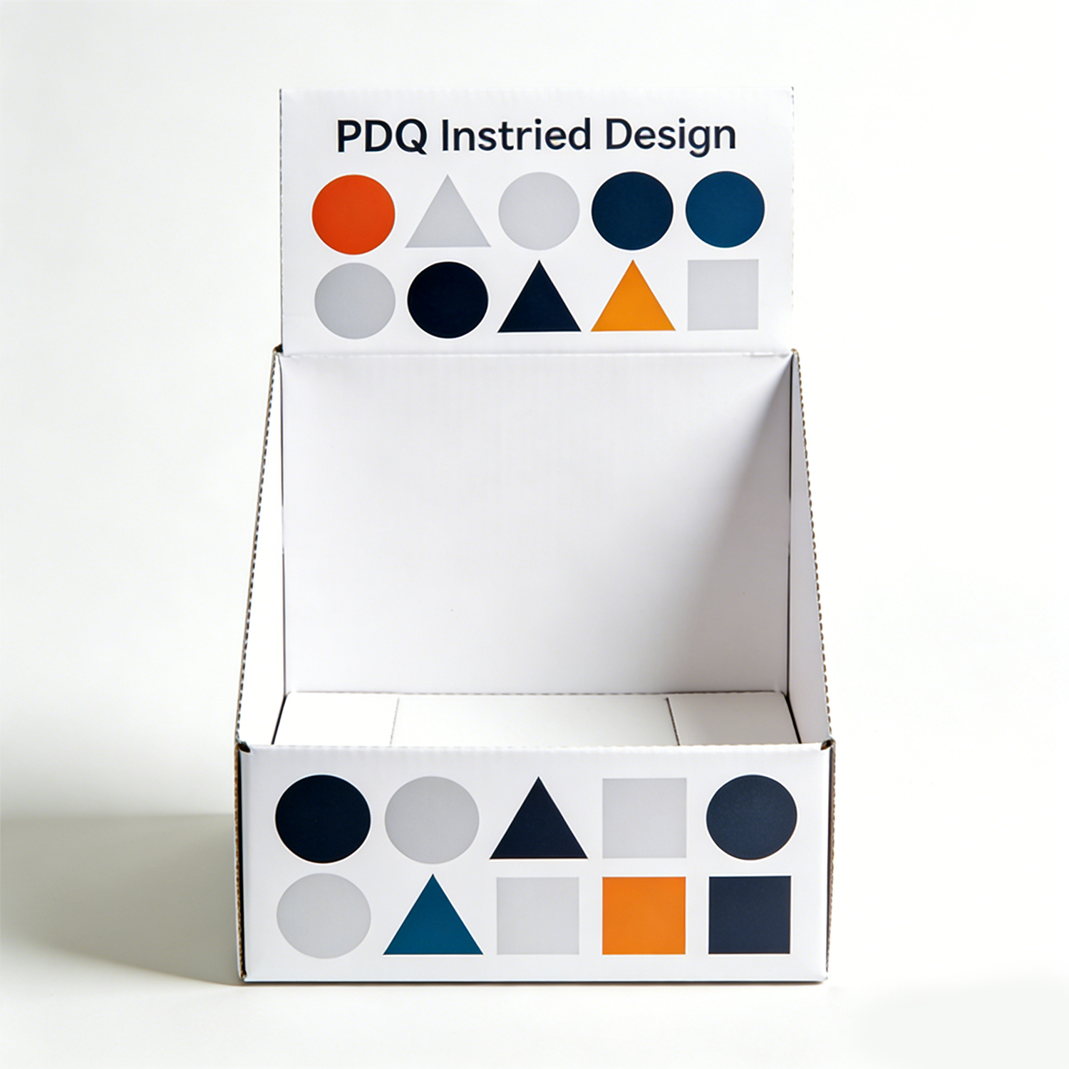 This display box is designed in a PDQ (Pretty Display Quickly) format, widely used in retail for its efficiency and convenience. The structure allows for quick setup and immediate product display, making it ideal for high-traffic retail spaces.