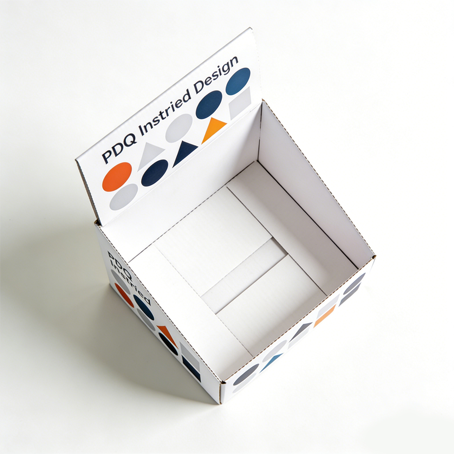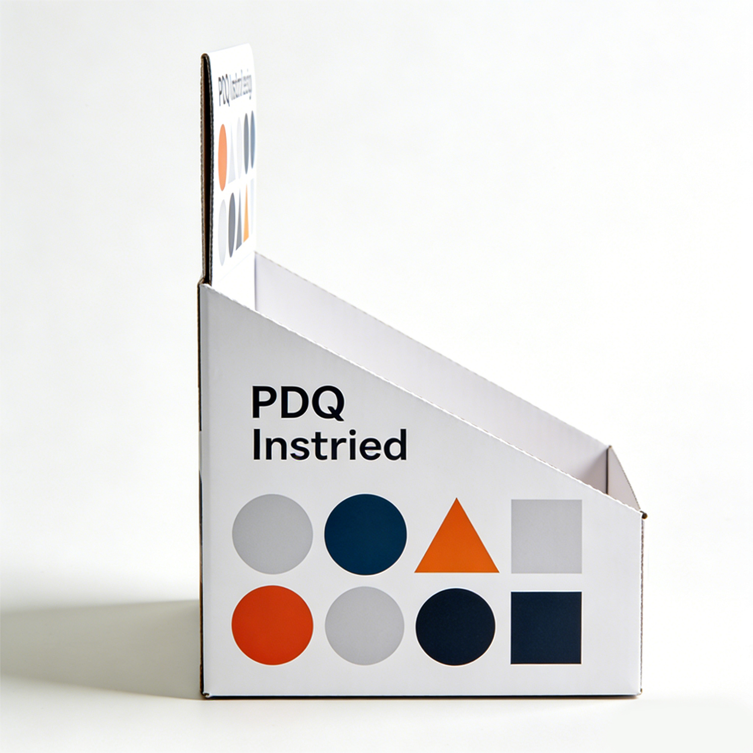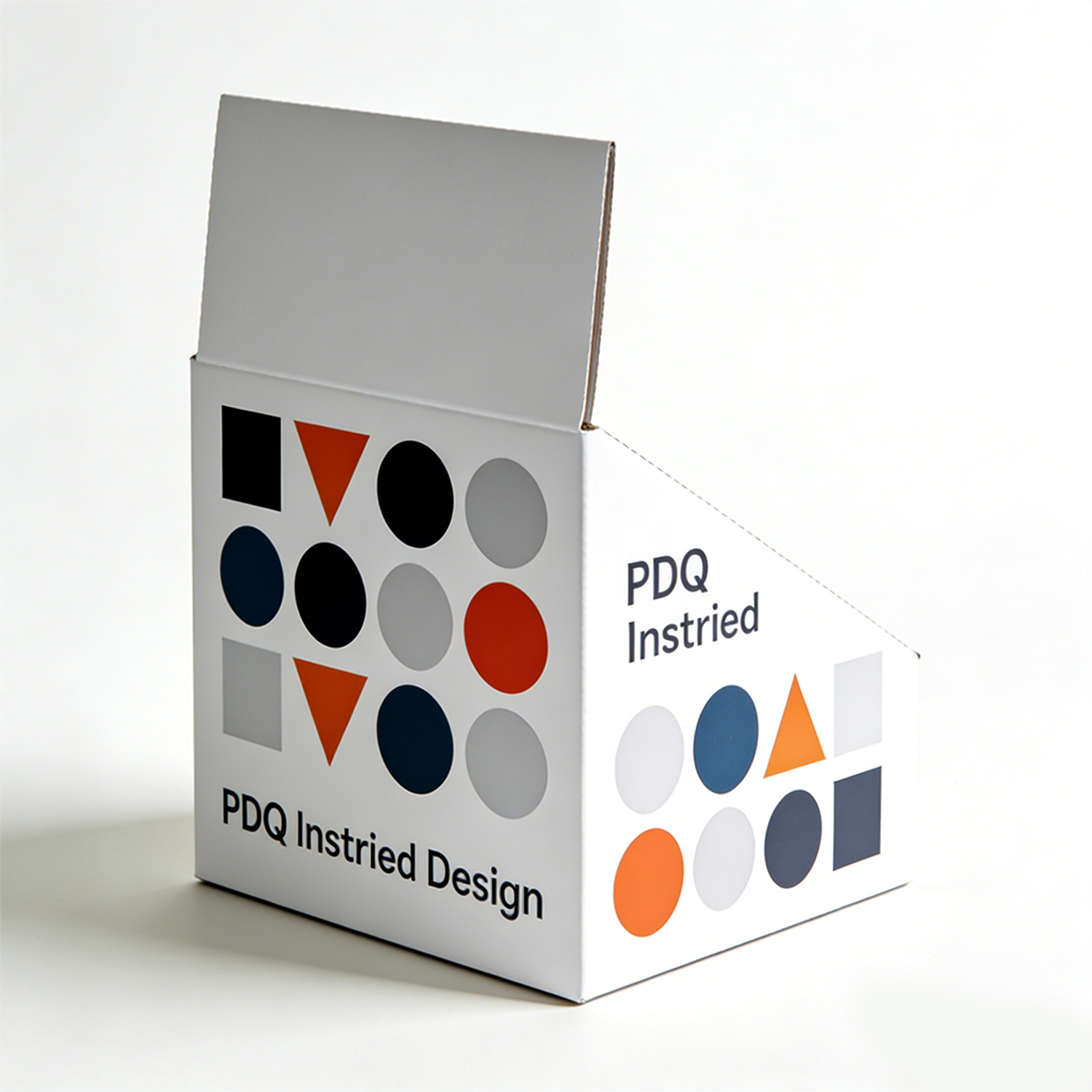 This display box is designed in a PDQ (Pretty Display Quickly) format, widely used in retail for its efficiency and convenience. The structure allows for quick setup and immediate product display, making it ideal for high-traffic retail spaces.