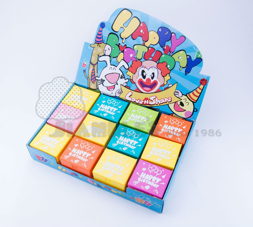 "HAPPY BIRTHDAY" texts imprint on the box.