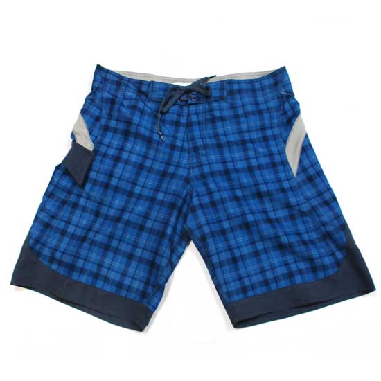 This pair of men's boardshorts displays the timeless checked patterns with plain-colored panel at the hems. The convenient and useful pockets on both sides have hook-and-loop fasteners to guarantee the safety of the inner contents. The highlighted item is particularly suitable for outdoor activities.