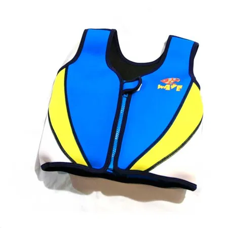 Featured is a kids' swimming suit designed in a restless style. The zipper closure at front allows easy wearing by kids. The contrasting colors of the swimming suit look exceptionally sharp on kids.
