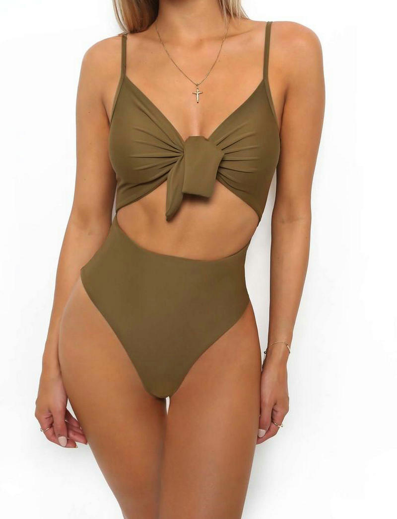 It presents an adjustable cross spaghetti-strap, which looks wonderfully good on people with average bust sizes and narrow shoulders.