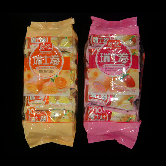 Showcased here is a pack of Swiss roll snack. Smooth cream filling of fruit flavor is simply delicious. Packed individually, this snack can be enjoyed anytime, anywhere.