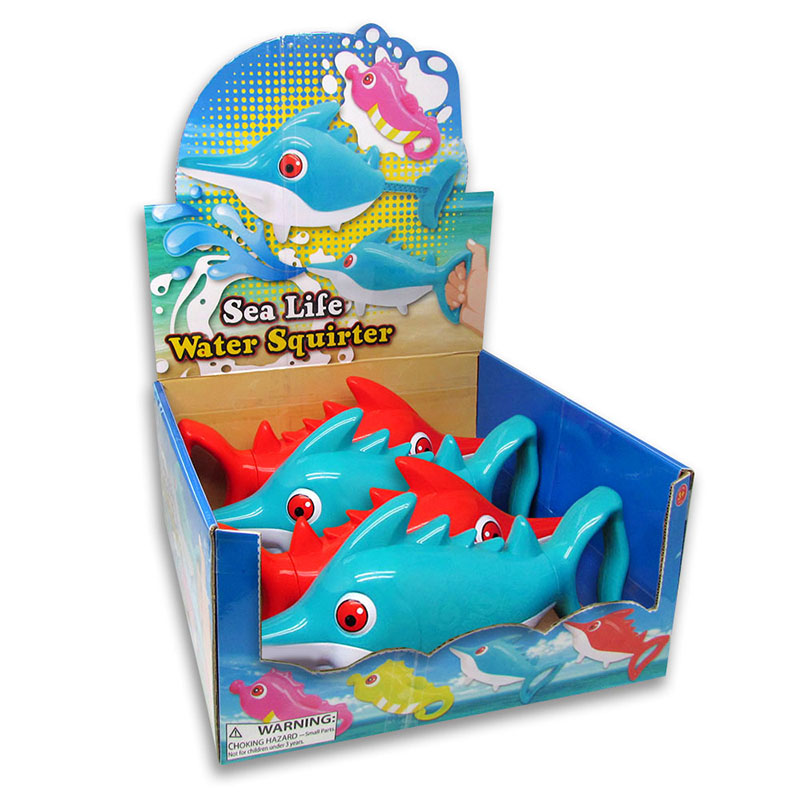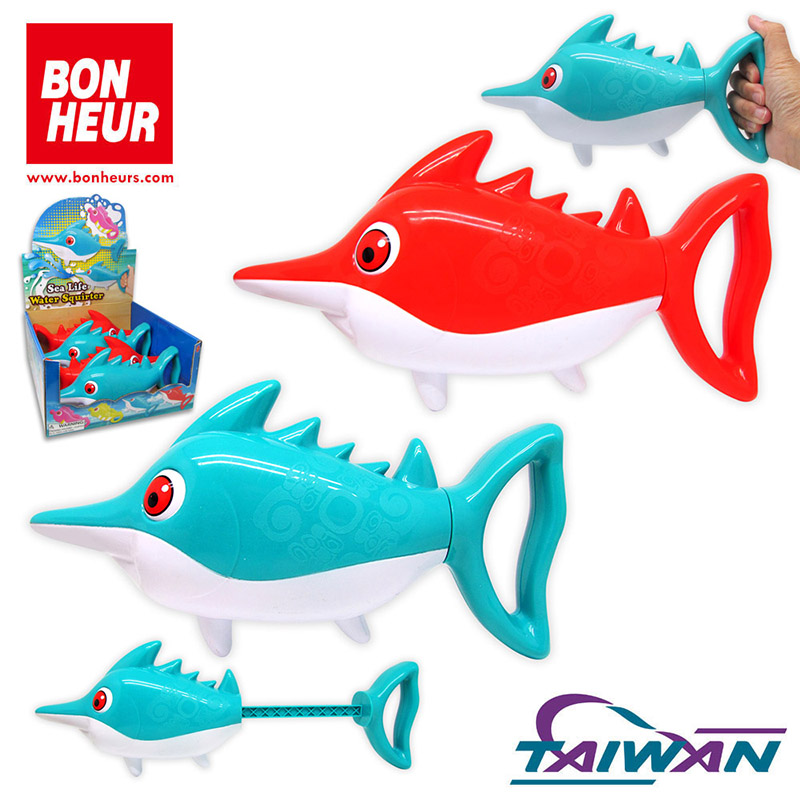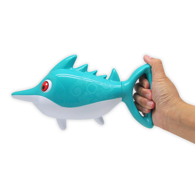 The Swordfish Water Squirter is the ultimate water toy for endless summer fun! This powerful water squirter is designed to resemble a swordfish, adding a touch of excitement to any water battle. Simply fill the reservoir with water, pump the handle to play.