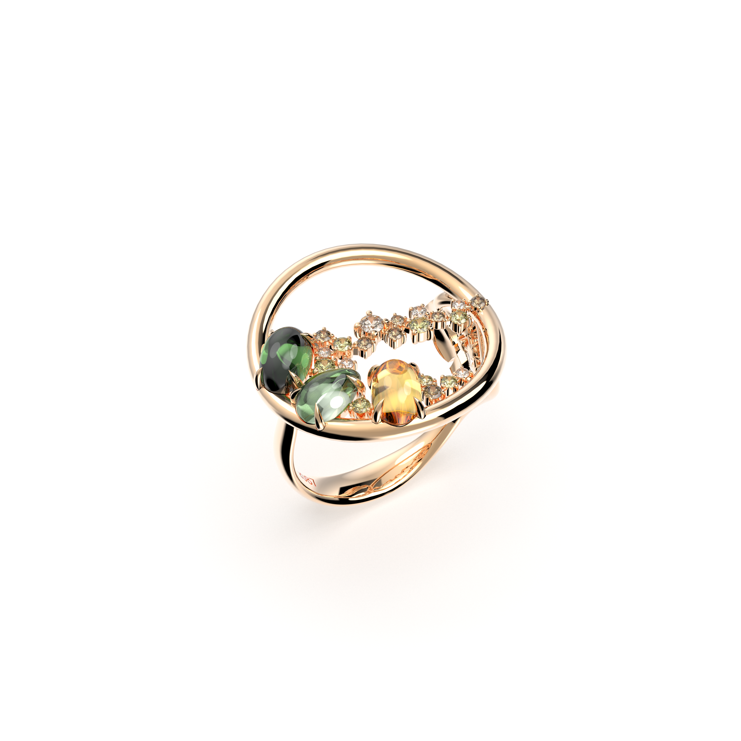 Metal : Rose Gold / Diamond : Multi-Brown Diamond / Gemstone : Tourmaline