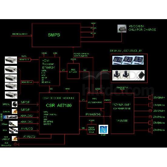 • Input: Bluetooth Aptx 4.0 CSR8645 with NFC, HDMI, Coaxial, Optical, AUX in, 3.5mini