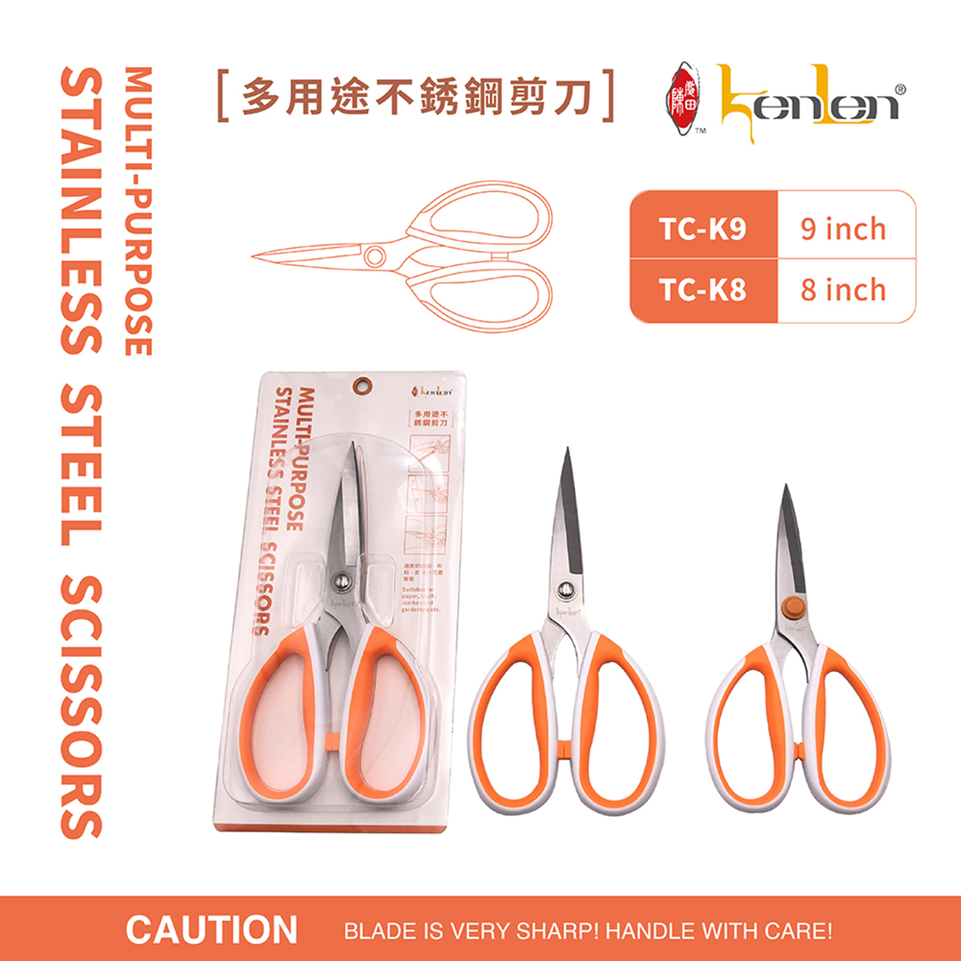 Kenlen Professional Multi-purpose Stainless Steel Scissors Crafted from stainless steel, sharp blades for smooth cutting Rubber non-slip handle for a comfortable grip Perfect for paper, fabric, leather, or floral needs One pair of scissors for all your needs! Professional quality, tailored just for you!