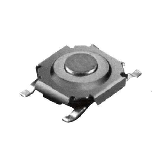Shown here is an electrical tact switch for convenience. The polished metal casing comes with a burnished silvery finish. The modern design of the tact switch can fit into various indoor settings.