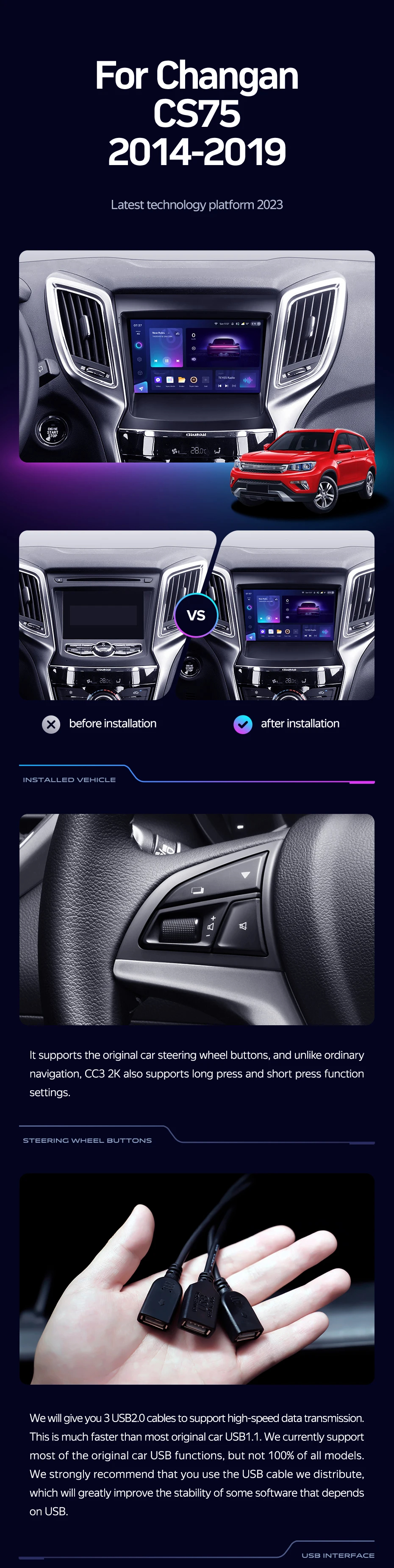 TEYES CC3 2K For Changan CS75 2014 - 2019 Car Radio Multimedia Video Player Navigation stereo GPS Android 10