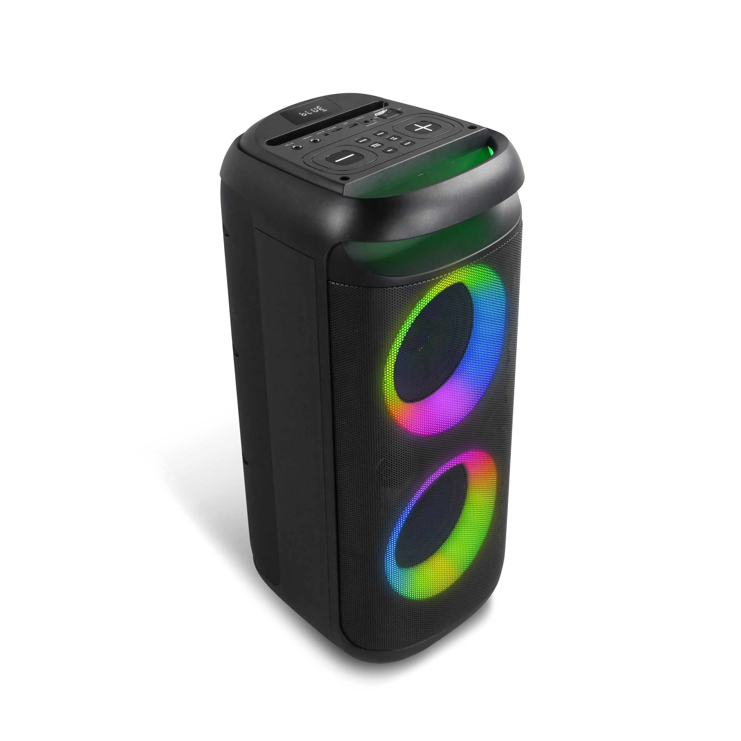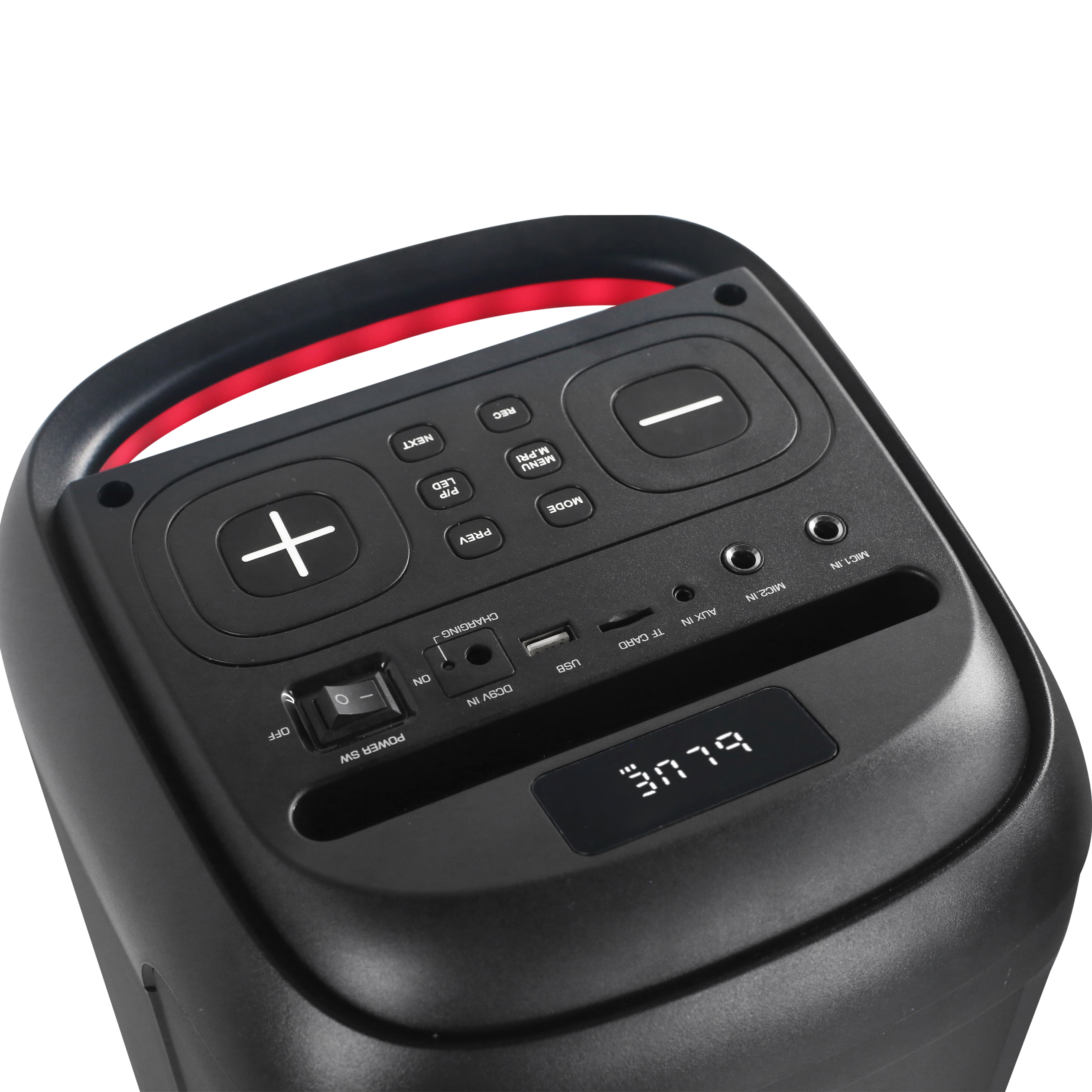 Turn up the volume and take the party anywhere with the TK-6628. Designed for both power and convenience, this speaker delivers deep, room-filling bass, electrifying LED light effects, and a sturdy built-in handle with a sleek red grip for comfortable, one-handed carrying.