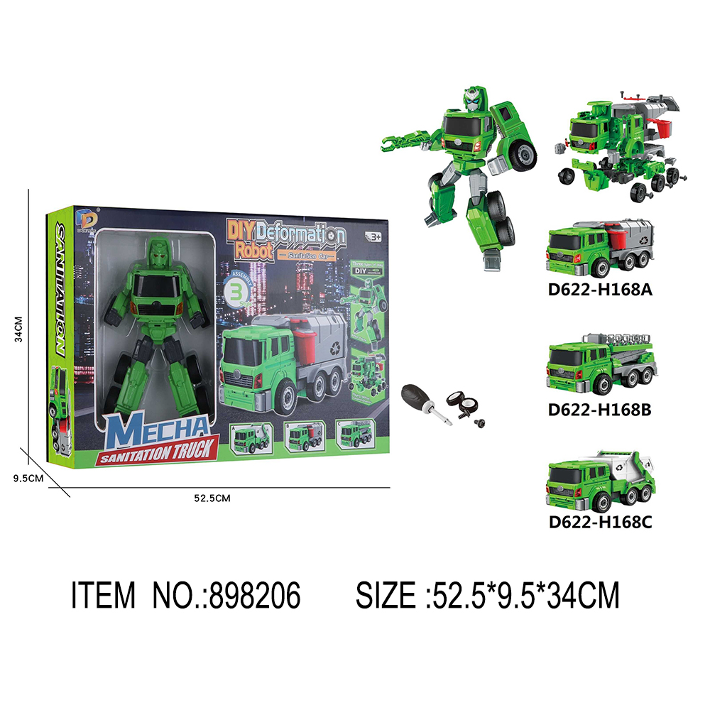 TRANSFORMING DIY SANITATION TRUCK PLAYSET WITH MUSIC & LIGHTS(USE 3 PCS AG13 INCLUDED),TEST REPORTS:EN71 PART-1/2-3/PHTHALATE.