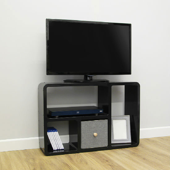 The CU2 TV stand appeals to people with its fashionable and practical design. It comes in allover black with a glossy finish for easy cleaning. Made of ABS plastic, this stand promises a long service life.