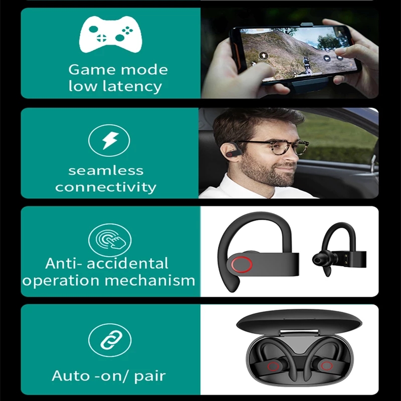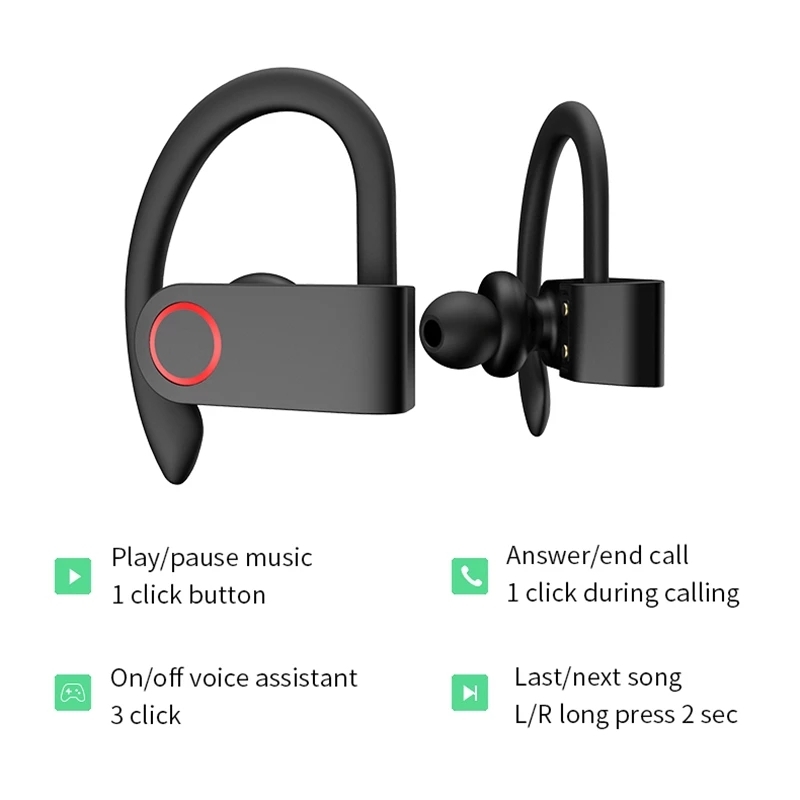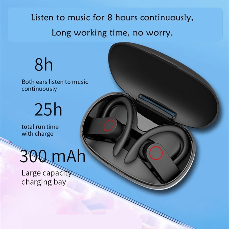 Wireless Bluetooth Earphones Sport Headphones earhook V5.0 TWS Headset HiFi Sound Earbuds With MIC