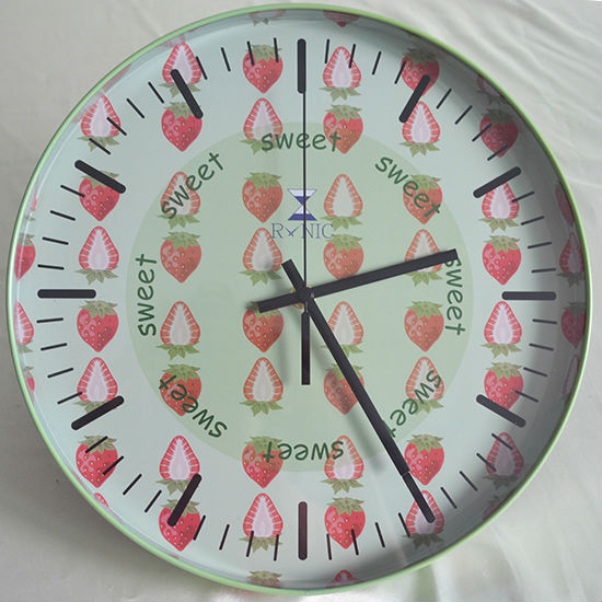 This “sweet” clock may be a perfect addition to your kitchen with its lovely strawberry pattern. Columns of strawberry prints are featured all over the clock face, which looks neat and lovely. Minimalist stick hour marker and hands are made to set off the multi-colored background.