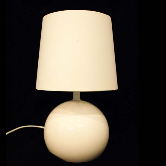 The fabric lampshade of this table lamp comes with a traditional design. The lamp is completed with a plump global-shaped base. Its solid white tone makes it a decent choice for households and hotels.
