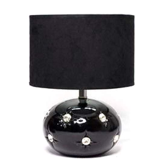 Featured here is a table lamp with a simple yet chic design. The lampshade and lamp base come in a matching black tone. It is ideal for home use.