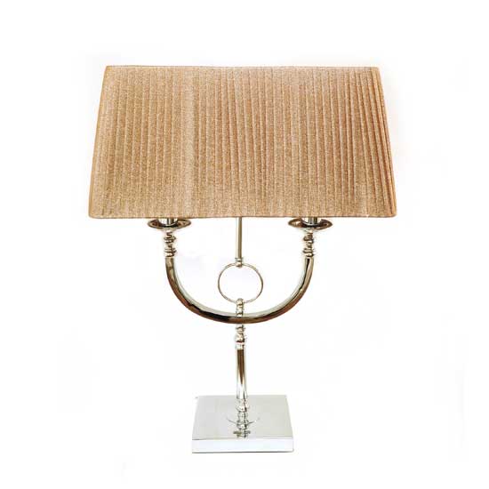 This indoor table lamp highlights a beautiful linen fabric lampshade that is completed with a beige-colored finish. It features a metal base and arms which are simple and stylish for a contemporary touch. This table lamp glows warmly and creates a perfect ambiance.