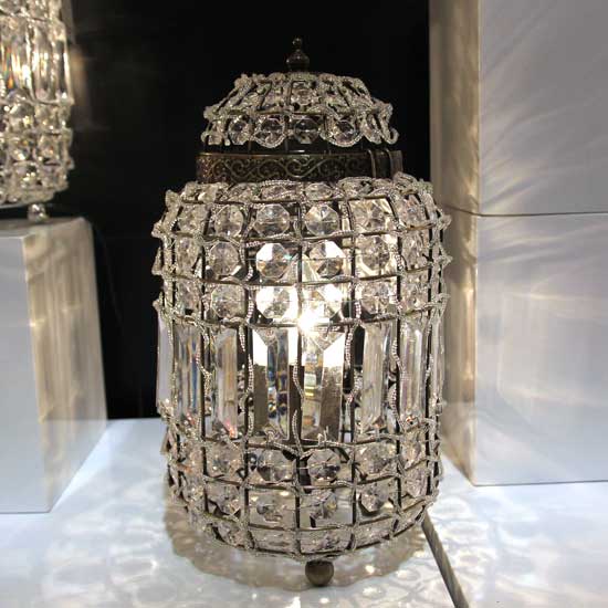 This extravagant table lamp is made of delicate crystalline pieces in various shapes. Antique brass is adopted in the design to create an extra elegant touch. This elaborate lamp is a fascinating addition to your home decor.