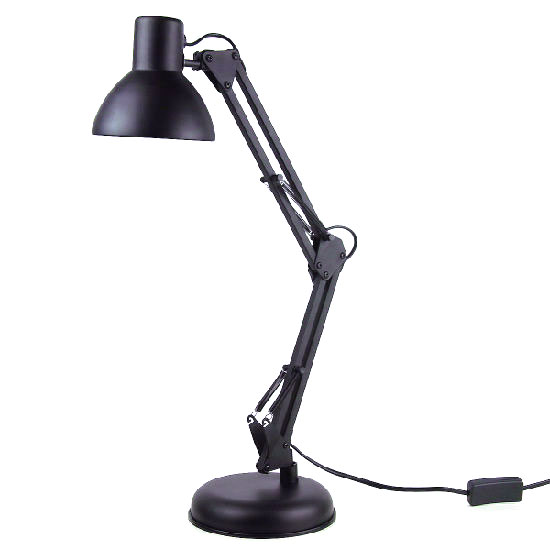 This is a table lamp coming with a black colored, matte finish for a classic touch. The lamp features an adjustable arm for an optimal height. This table lamp is sturdily constructed with durable materials and is a great light fixture for your work desk.