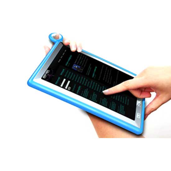 This tablet PC features a large touch panel for comfortable operation and clear image display. Your finger can put through the ring on the frame for enhanced security of the device during use. The tablet PC provides ready entertainment for travelers.
