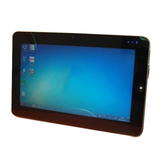Displayed here is a tablet personal computer that boasts a stylish design. Well equipped with a high-quality touchscreen, this tablet personal computer flaunts brilliant image display. Featuring a portable design, this tablet personal computer is suitable for on-the-go use.