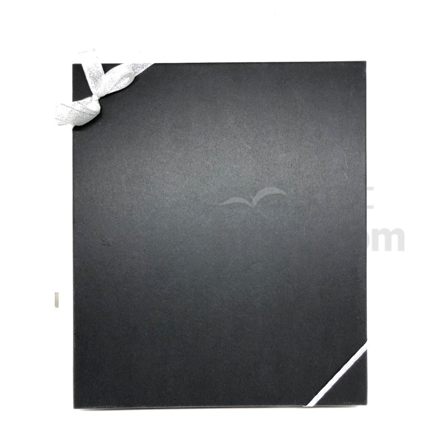 Material: 150g black paper mount with 1.5mm chipboard and black paper liner plus silver ribbon