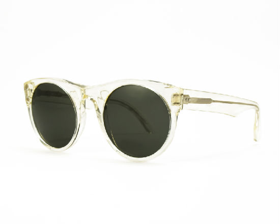 And although the frame has a slick finish, as black and shiny as a grand piano, or as transparent as a glass of champagne the round lenses keep them accessible.