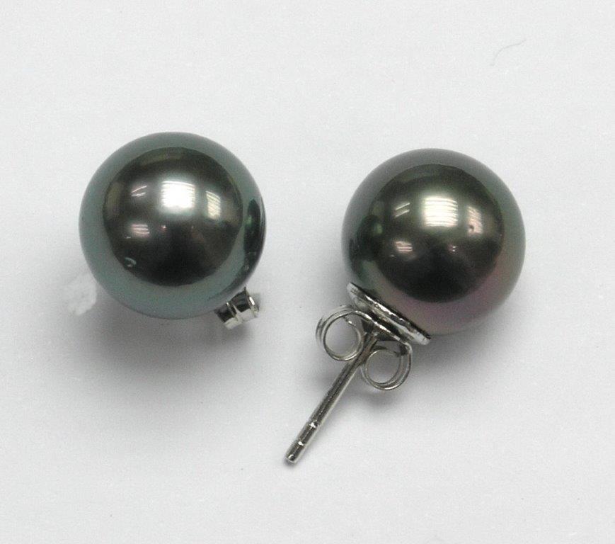 11-12mm Tahiti pearl with s/silver 4mm pearl cup ear stud earring