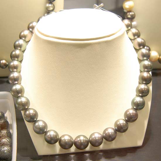 The ladies' necklace showcases Tahitian pearls with consistent round shape and color for a sense of balanced beauty. Priced for their high luster, these south sea pearls are ravishing pieces of jewelry for ladies of different ages. This valuable necklace with black Tahitian pearls blows your mind away with its astonishing elegance.