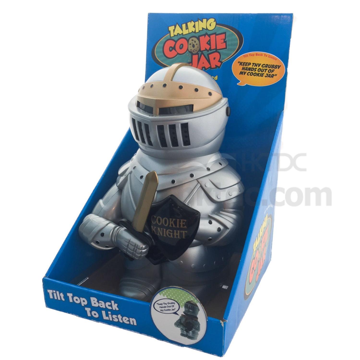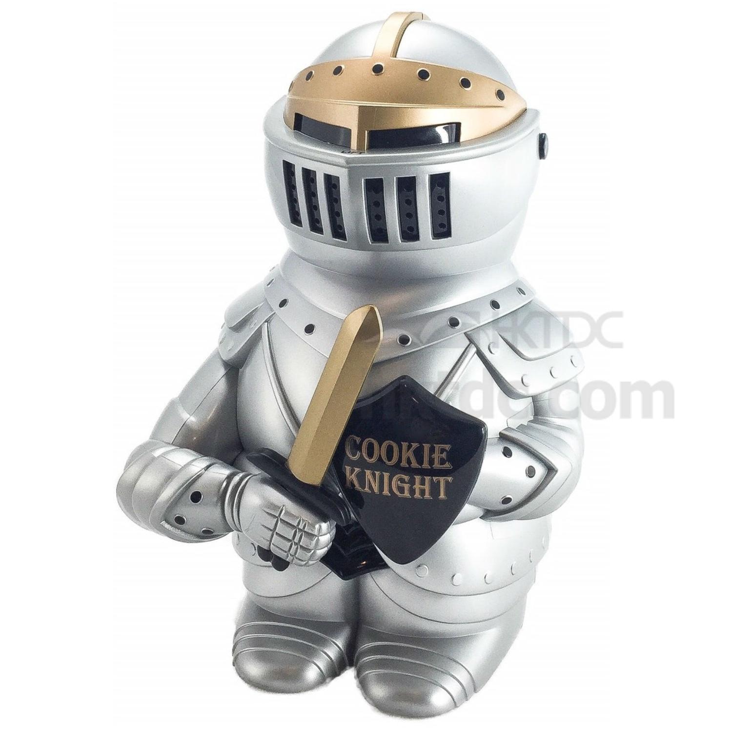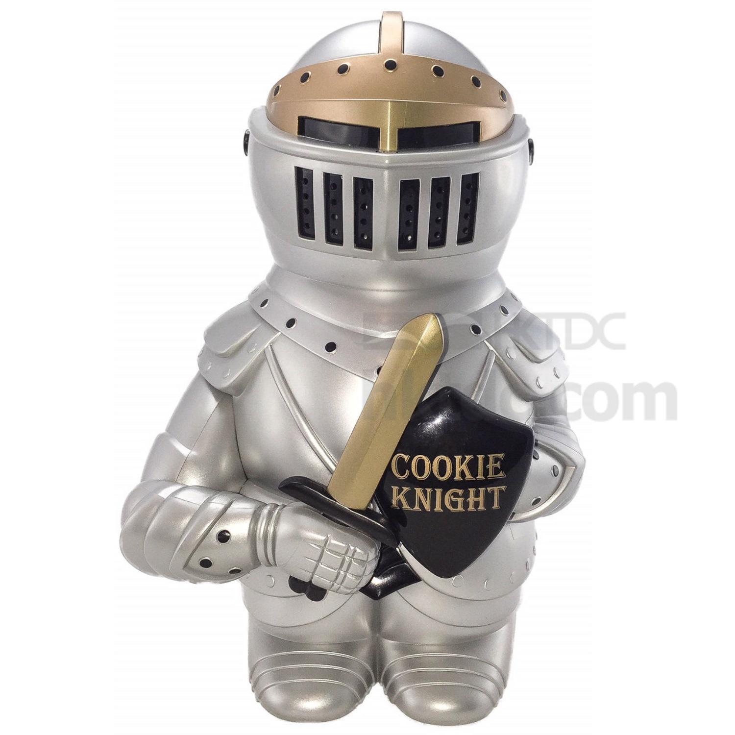 The displayed cookie and snack jar features a knight shaped design for attractiveness.