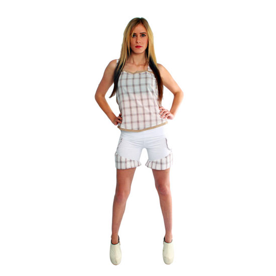This tank top is a great choice for fashionable ladies. It is designed with delicate checked patterns for a stylish touch. This ladies’ tank top is made of high-quality viscose and cheesecloth for maximum comfort.
