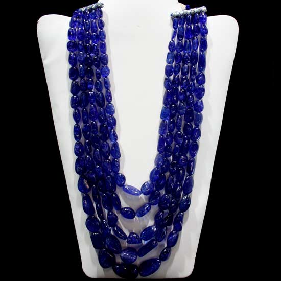 This tanzanite necklace comes with 5 strands of necklaces. The oval-shaped tanzanite stones are arranged in a creative way to attract people's attention. This item is an excellent choice for youthful and fashionable ladies.