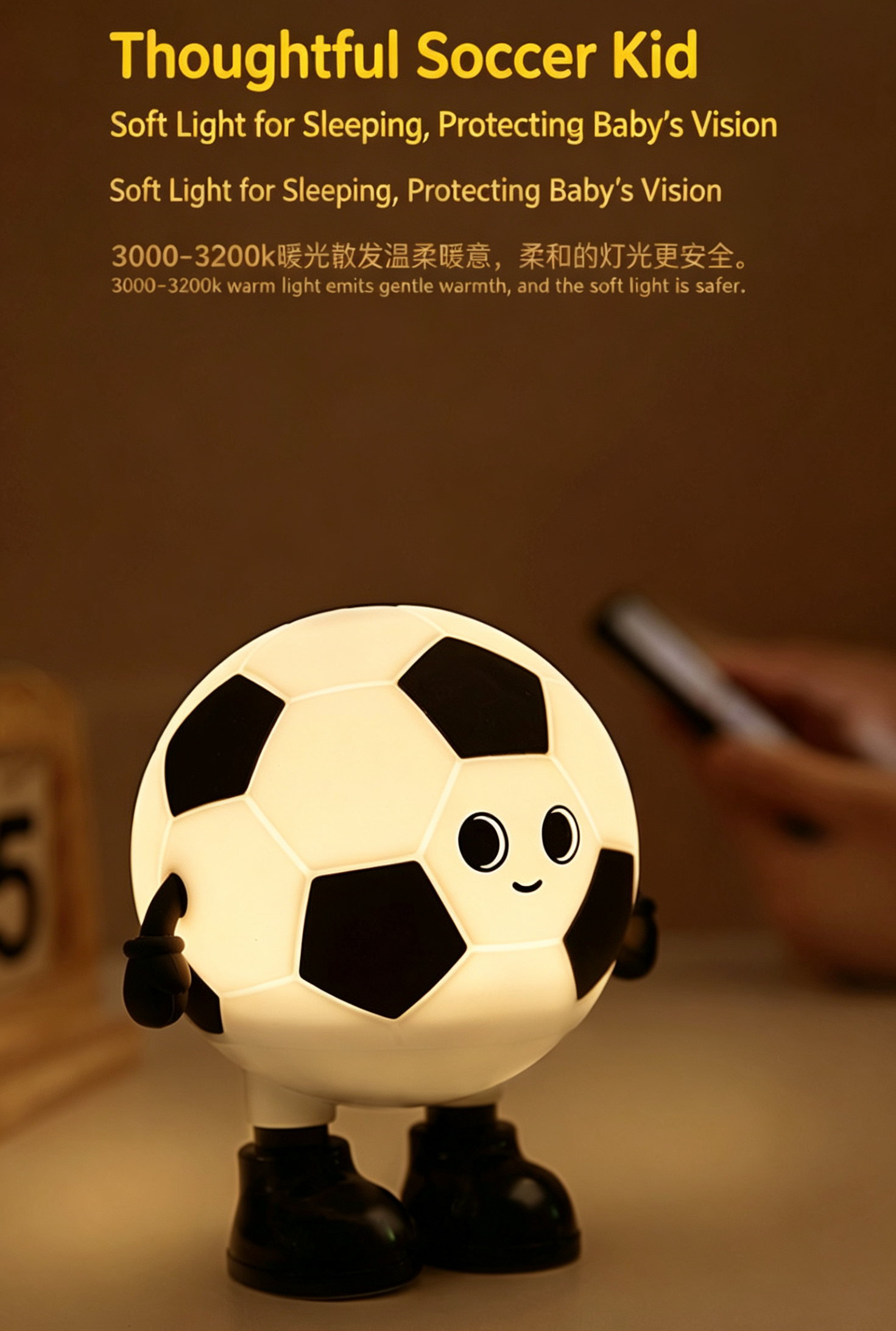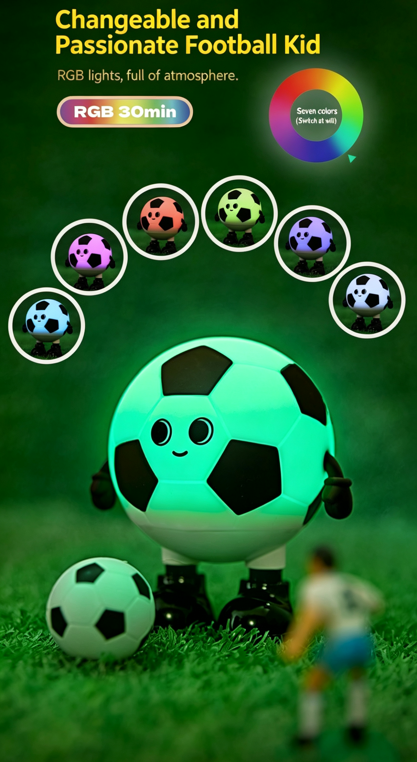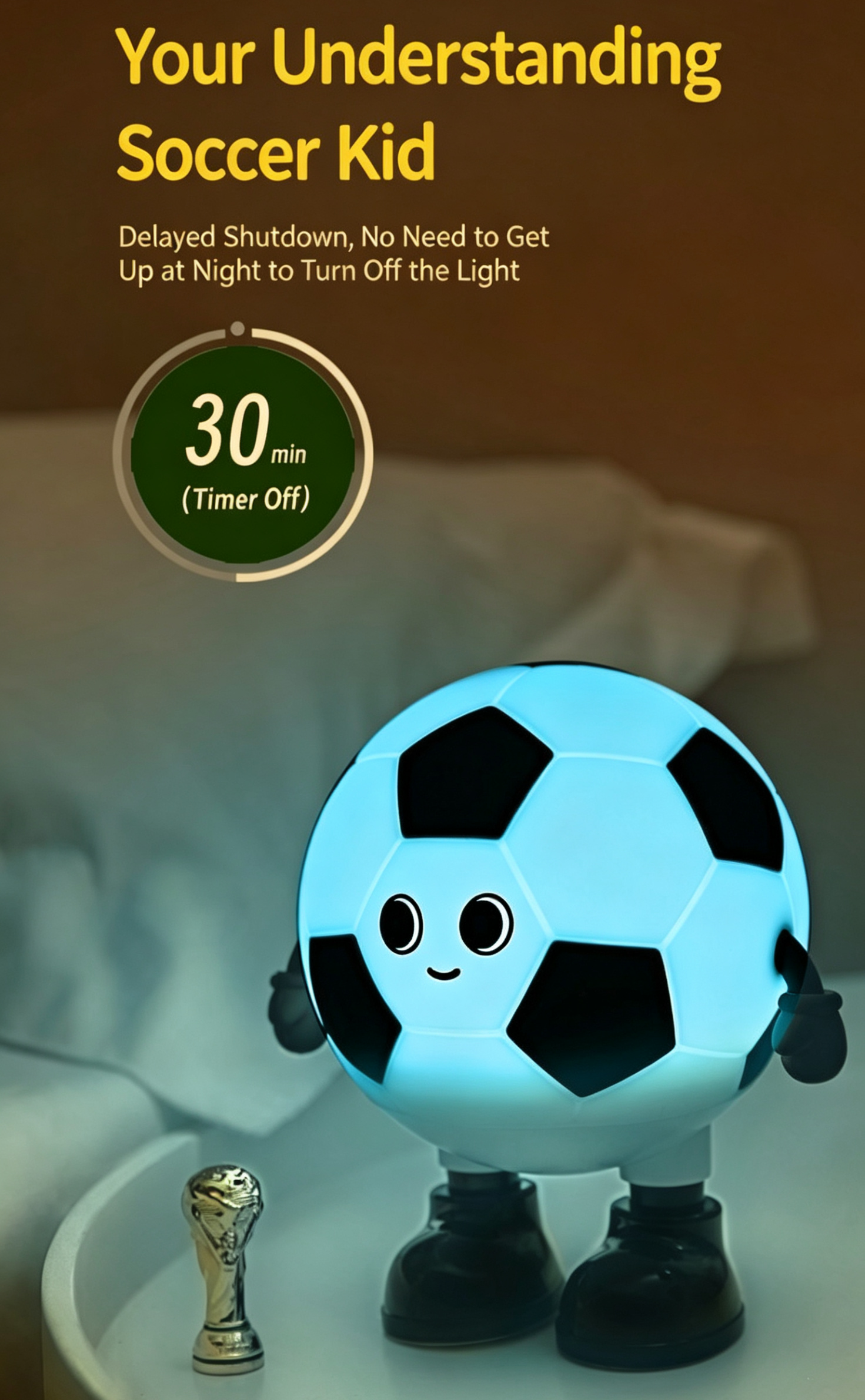 Meet your new adorable football-themed companion: the Cartoon Soccer Boy Night Light!