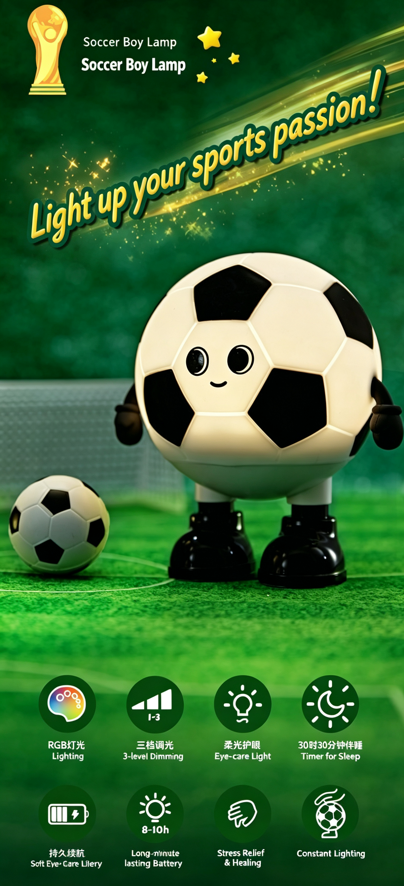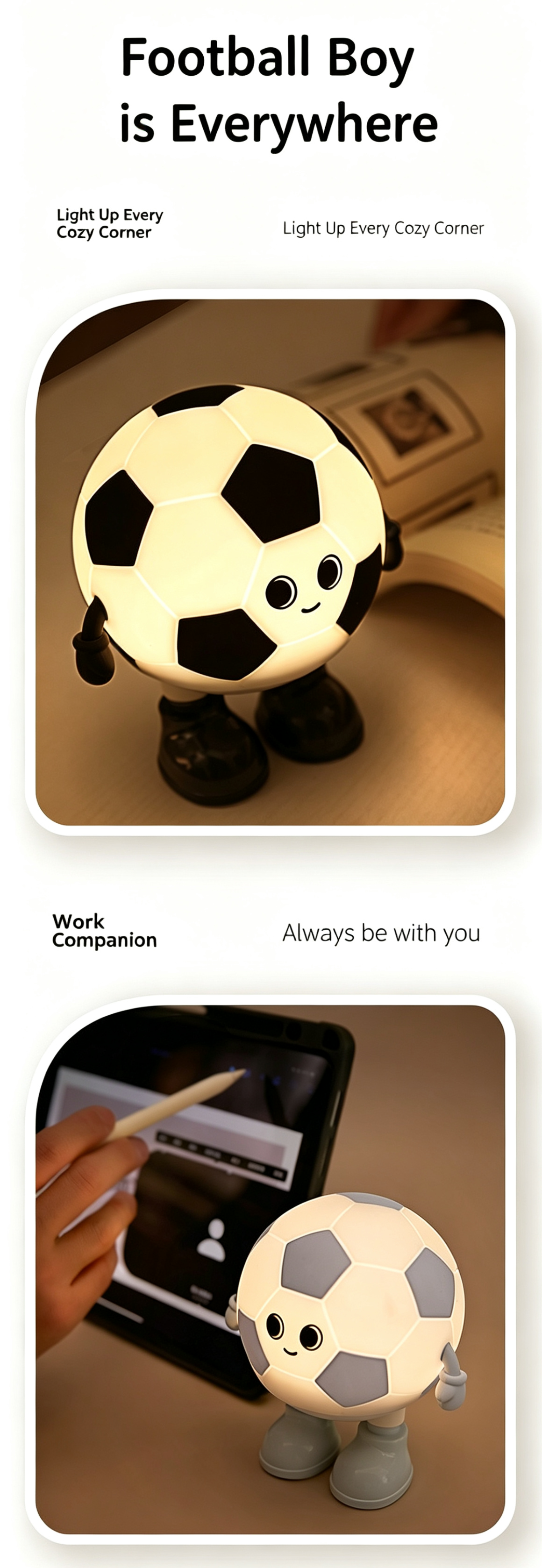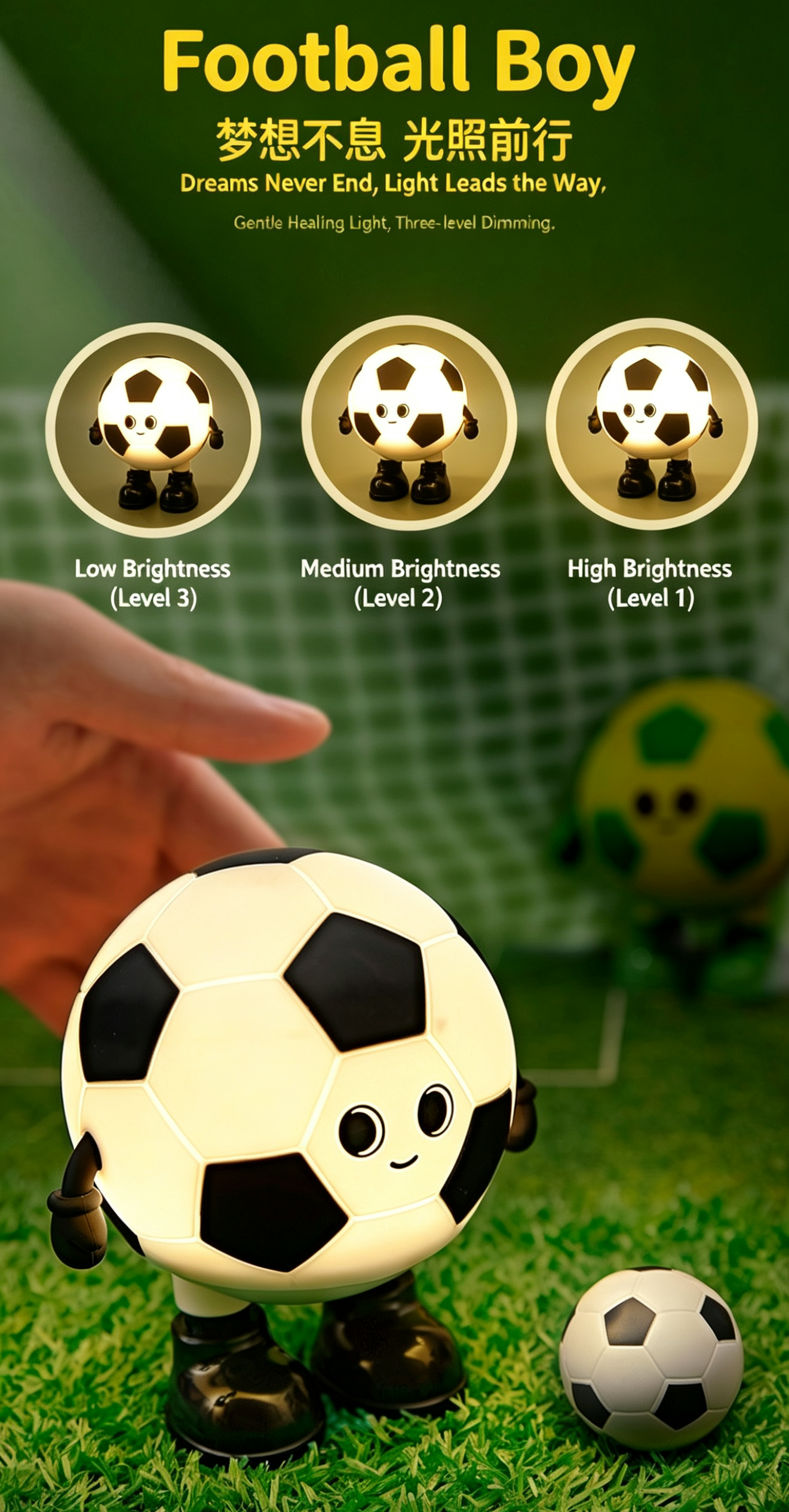 Meet your new adorable football-themed companion: the Cartoon Soccer Boy Night Light!