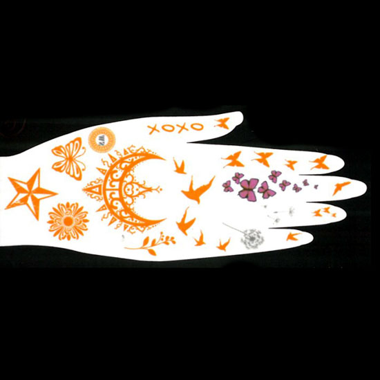 These are hand tattoo stickers with a fashionable design. They are designed with a colorful appearance for an eye-catching look. The tattoo stickers are easy to use and remove.