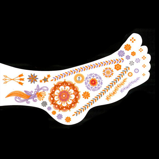 These are foot tattoo stickers that are designed in bright colors for an attractive look. They are finely crafted with delicate details. The tattoo stickers are easy to use and remove.