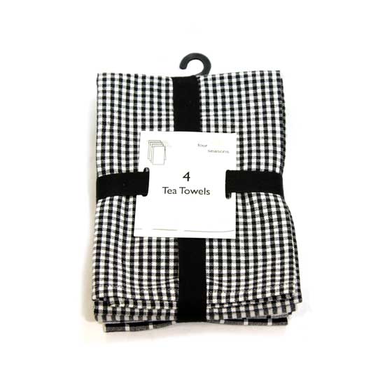 This tea towel features classic check patterns in black and white. It is made of 100 % cotton for softness and coziness. This attractive tea towel is great for home use.
